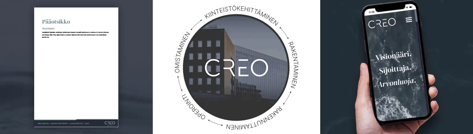 Loimme CREO Capitalille vakuuttavat verkkosivut ja liiketoimintaa tukevan ilmeen. Ainutlaatuinen toimintakonsepti esitellään ymmärrettävästi helppokäyttöisillä sivuilla.