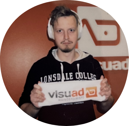 Loppuvuodesta hommat etenivät vielä siihen pisteeseen, että yhteisistä projekteista tuttu Sami napattiin pajalle takomaan näppistä ja brändejä uuteen uskoon. Viestinnän alalla kokenut seppä nikkaroi Visuadin asiakkaille copya ja viestintää. Lorem ipsum sentään!