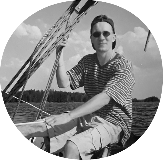 Vaan kuinkas kävikään? Mies päätyi tietenkin Ouluun, ja kymmenen vuoden mainostoimistotyöskentelyn jälkeen huomasi olevansa saman alan yrittäjä. Auts. Se niistä periaatteista.
